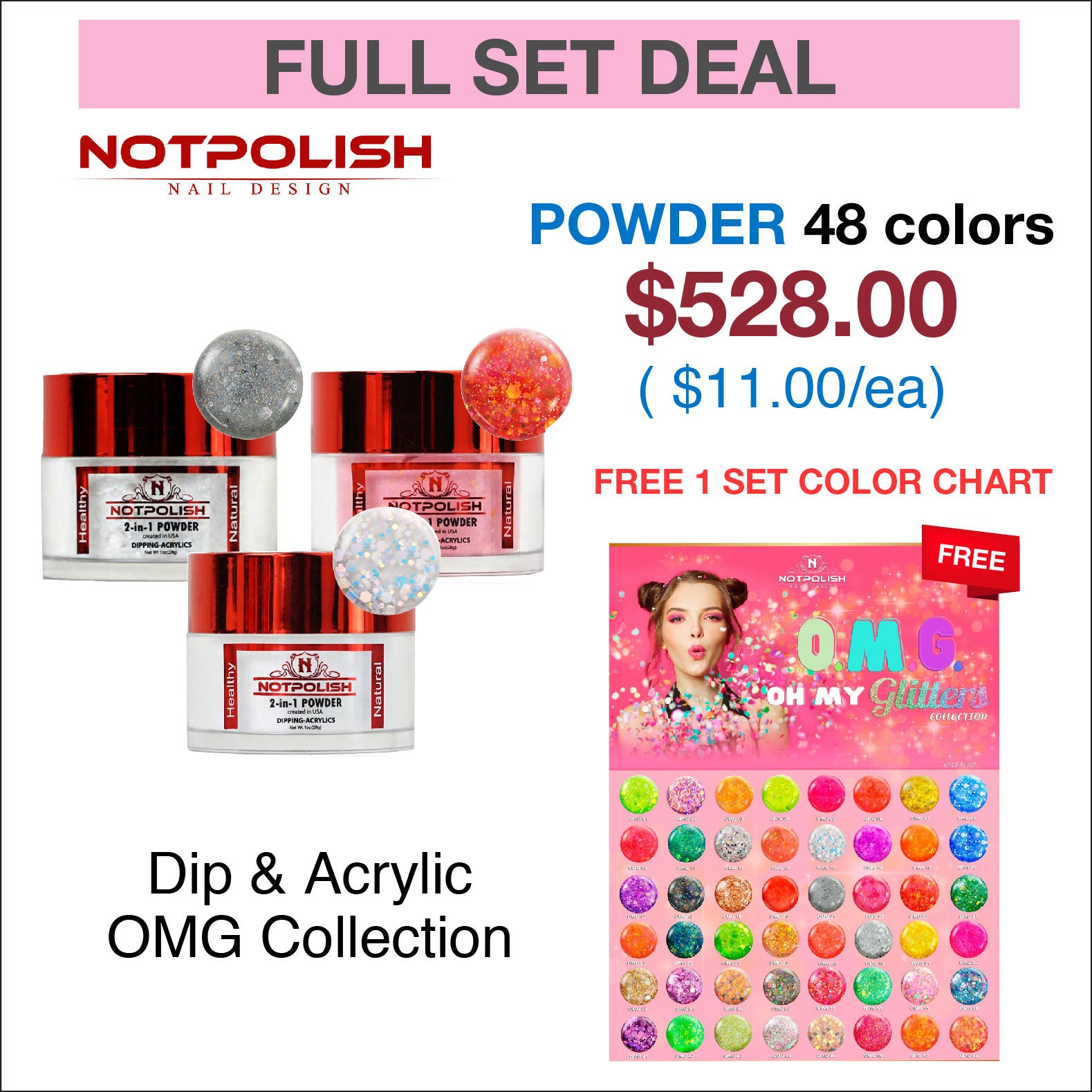 NotPolish Dip Powder 1oz – OMG Collection w/ 1 Set Color Chart